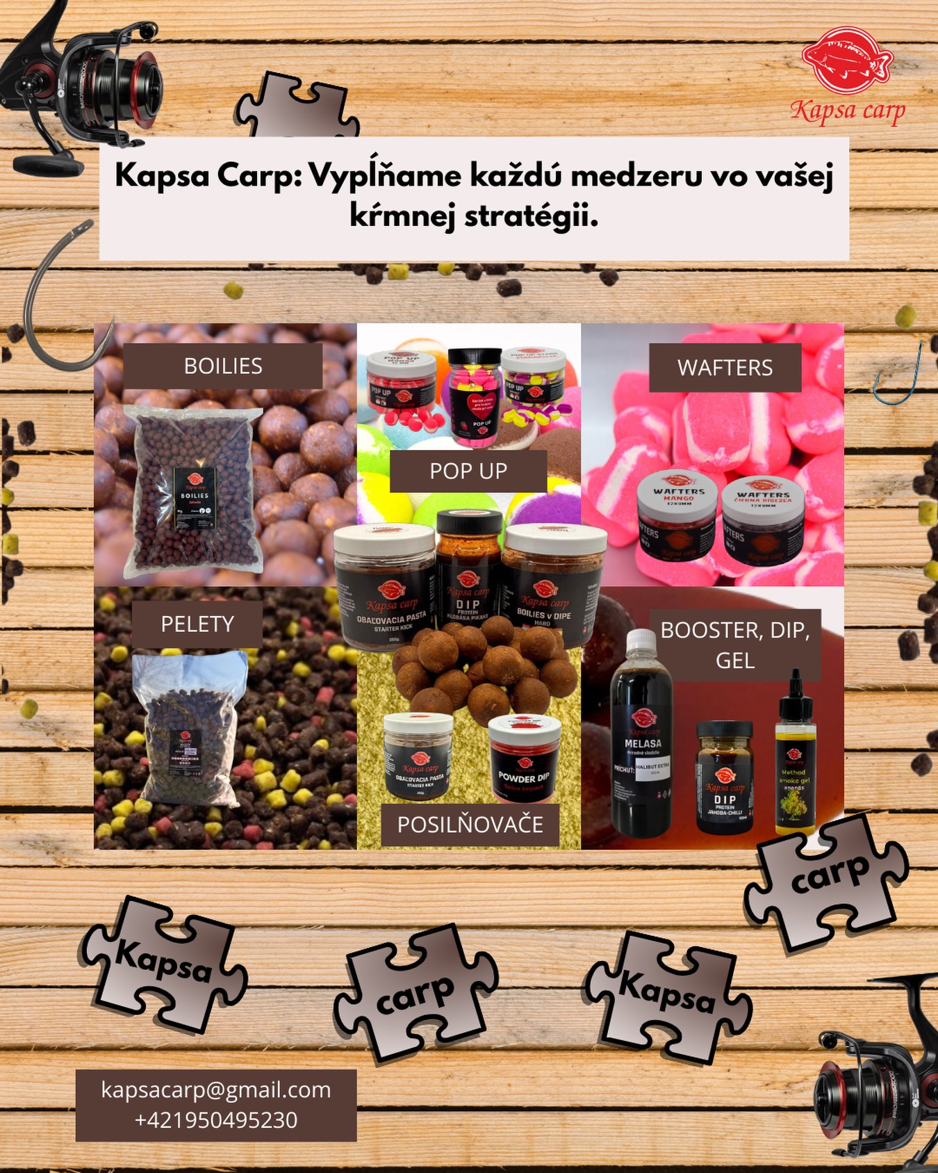 • Dipy pre ryby – atraktívne tekuté a práškové nástrahy